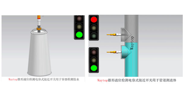 对于不同密度的物体,可通过调节灵敏度达到理想的检测要求,如Waytop的管道锥形液位开关,可非常准确地检测油水分离层,如下视频所示