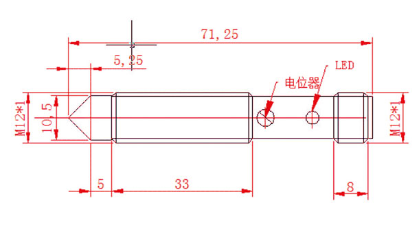 出线方式:M12-5芯防水航空连接器 | LED显示:红色-电源指示、绿色-输出指示 |