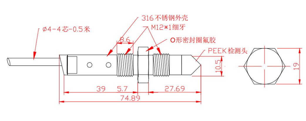③耐腐蚀性:头部PEEK材质、316不锈钢材质管体