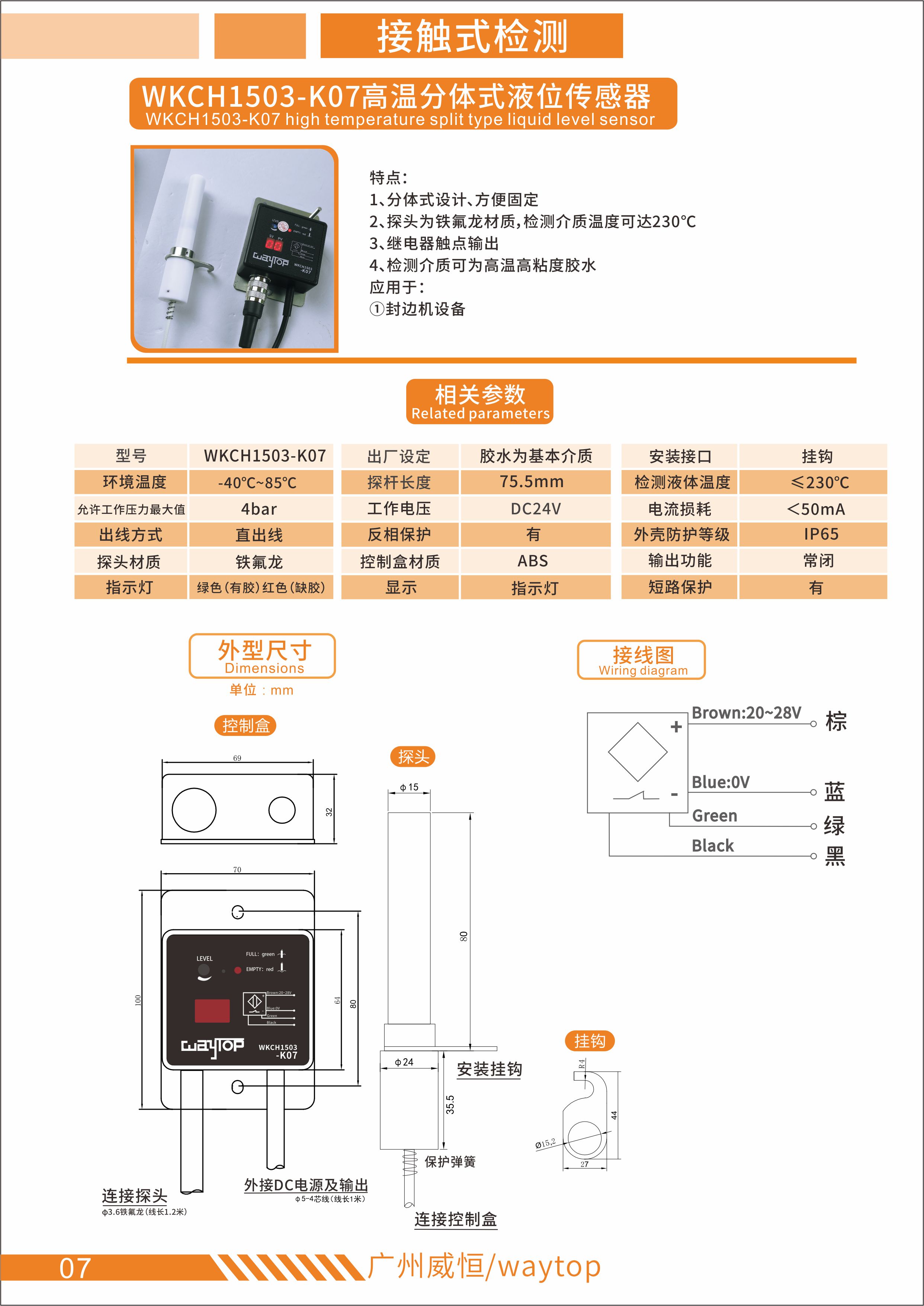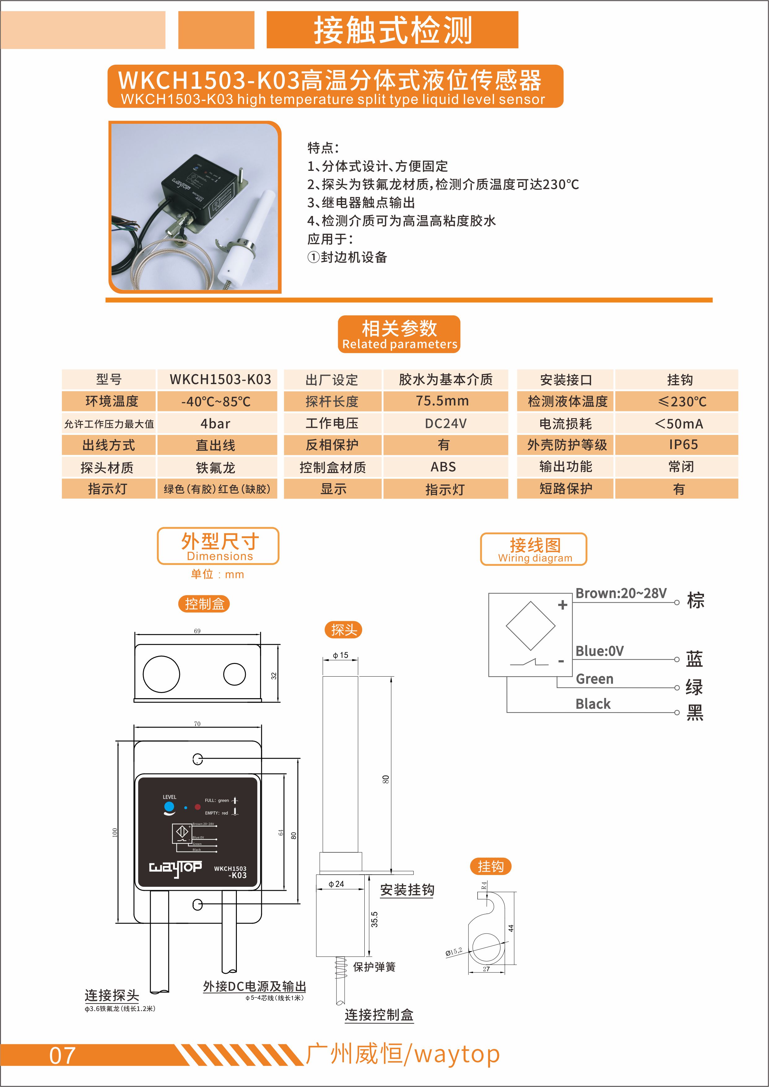 WKCH1503-K03黑色高温分体式液位传感器