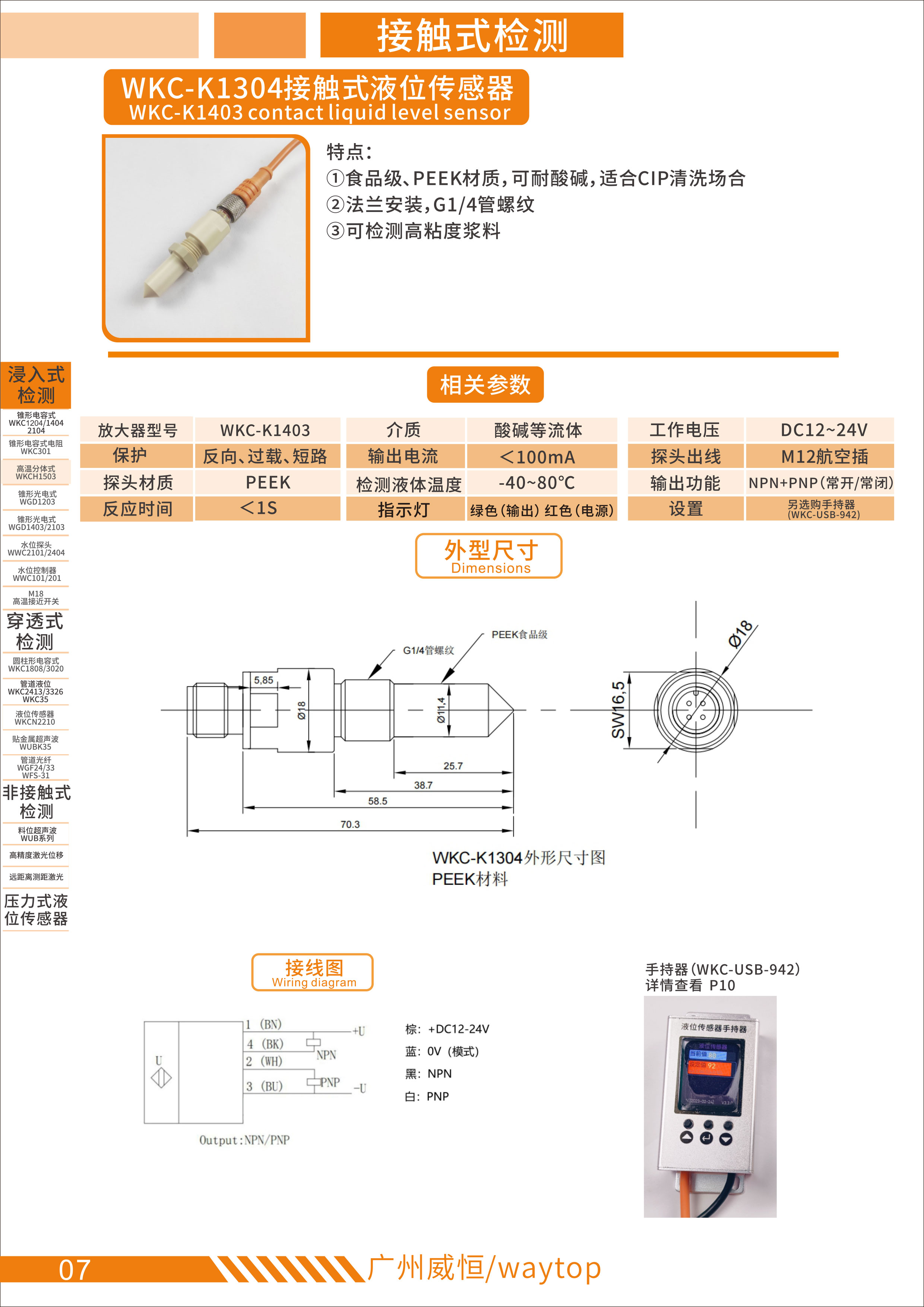WKC-T3304铁氟龙耐强酸碱液位传感......