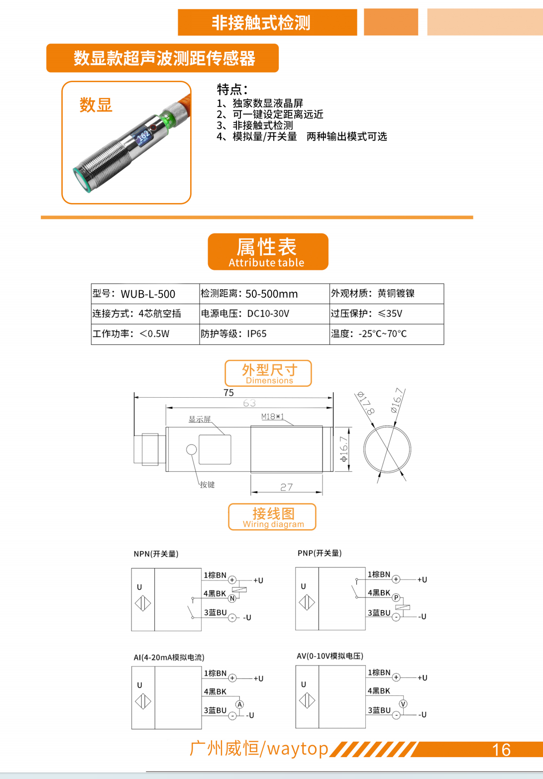数显款超声波测距传感器